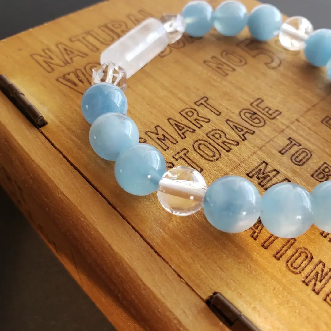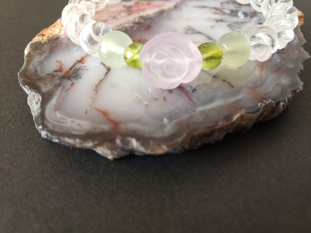 真実を見抜く石!プレナイトの半々ブレス(プレナイト×アクアマリン×水晶)