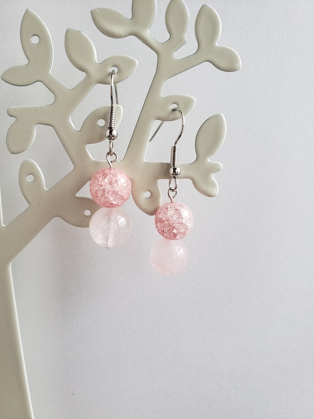 ローズクオーツ×クラック水晶(大人ピンク) ピアス