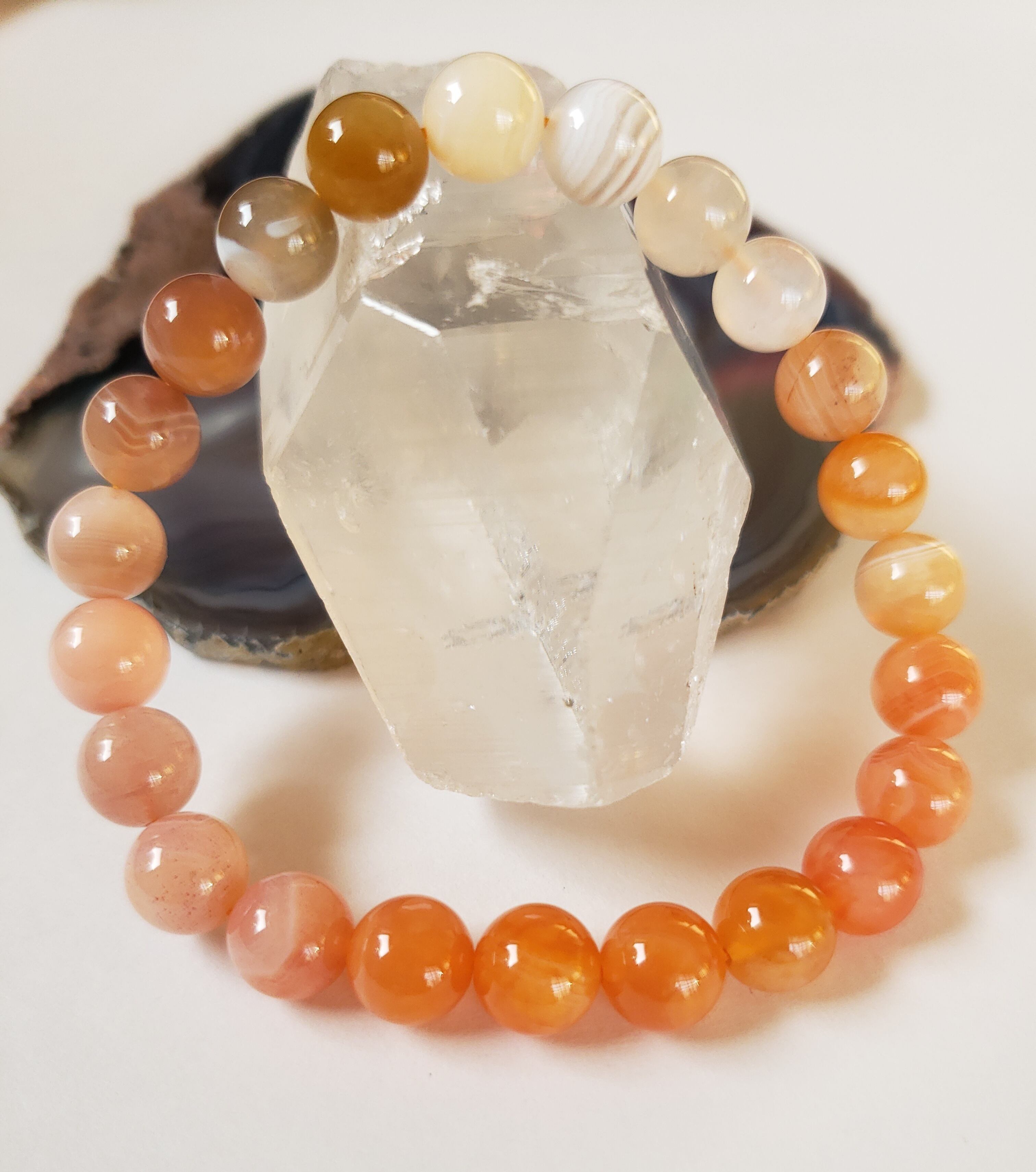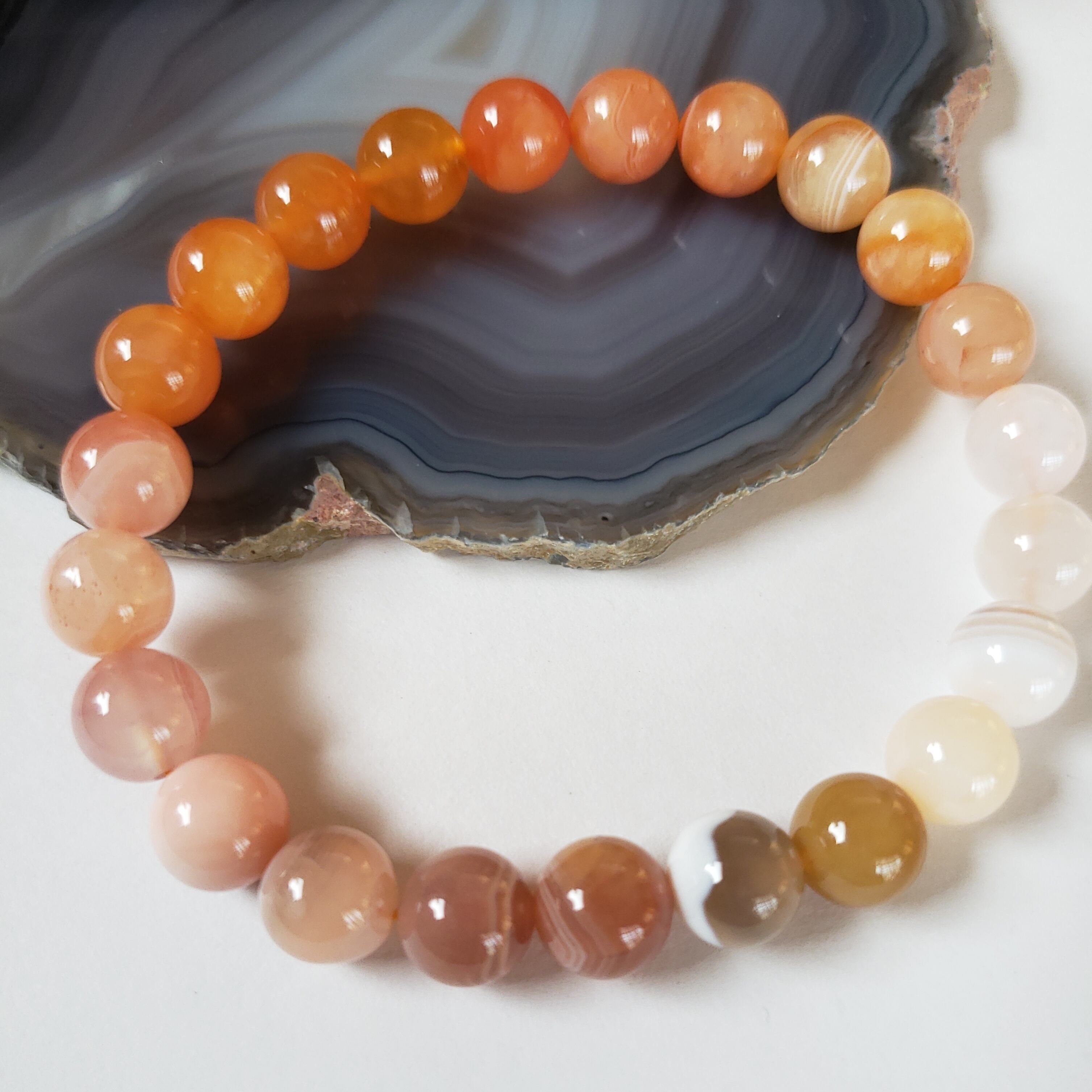 ボツワナアゲートだけでこのグラデーションを楽しめるなんて、色合いが最高でオススメですよ♪ ~~~