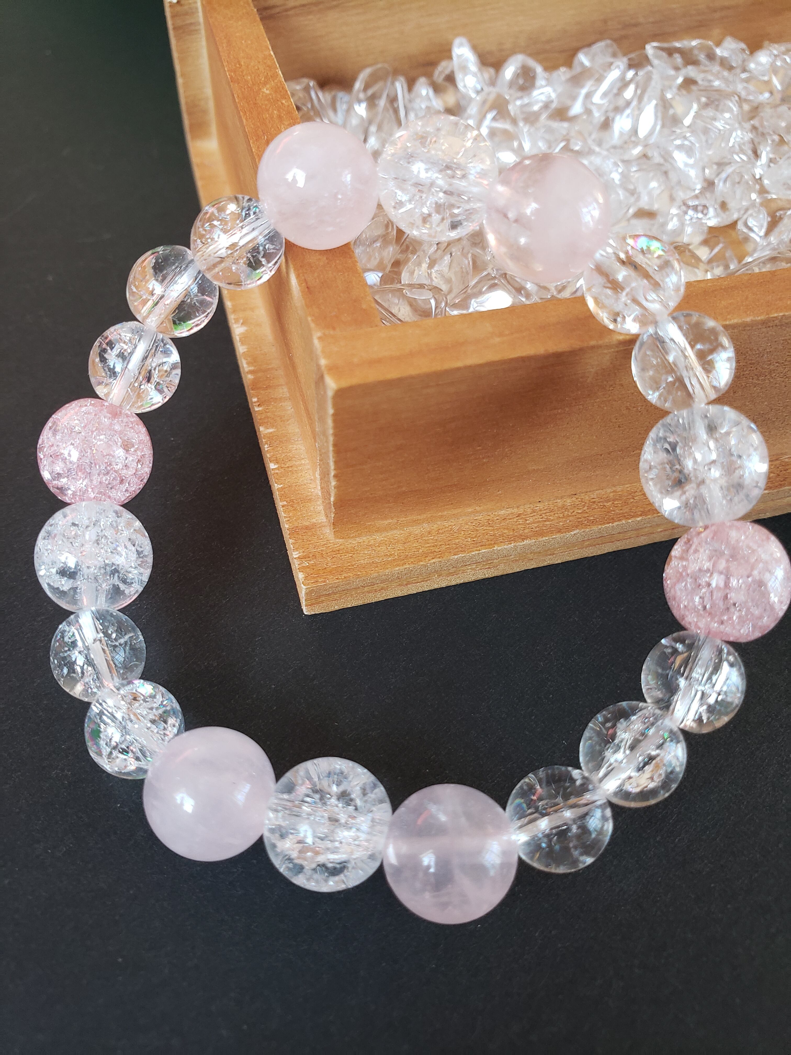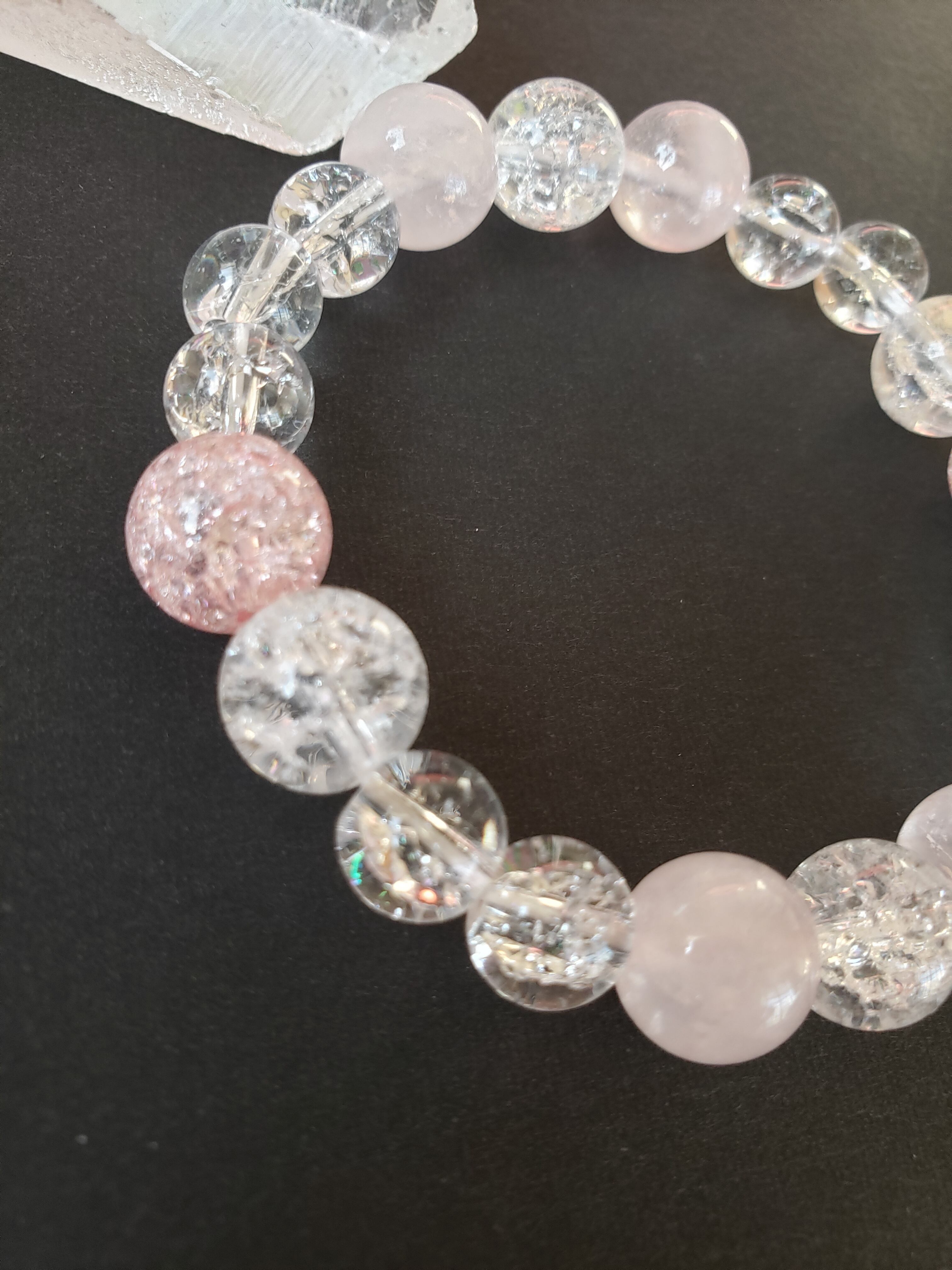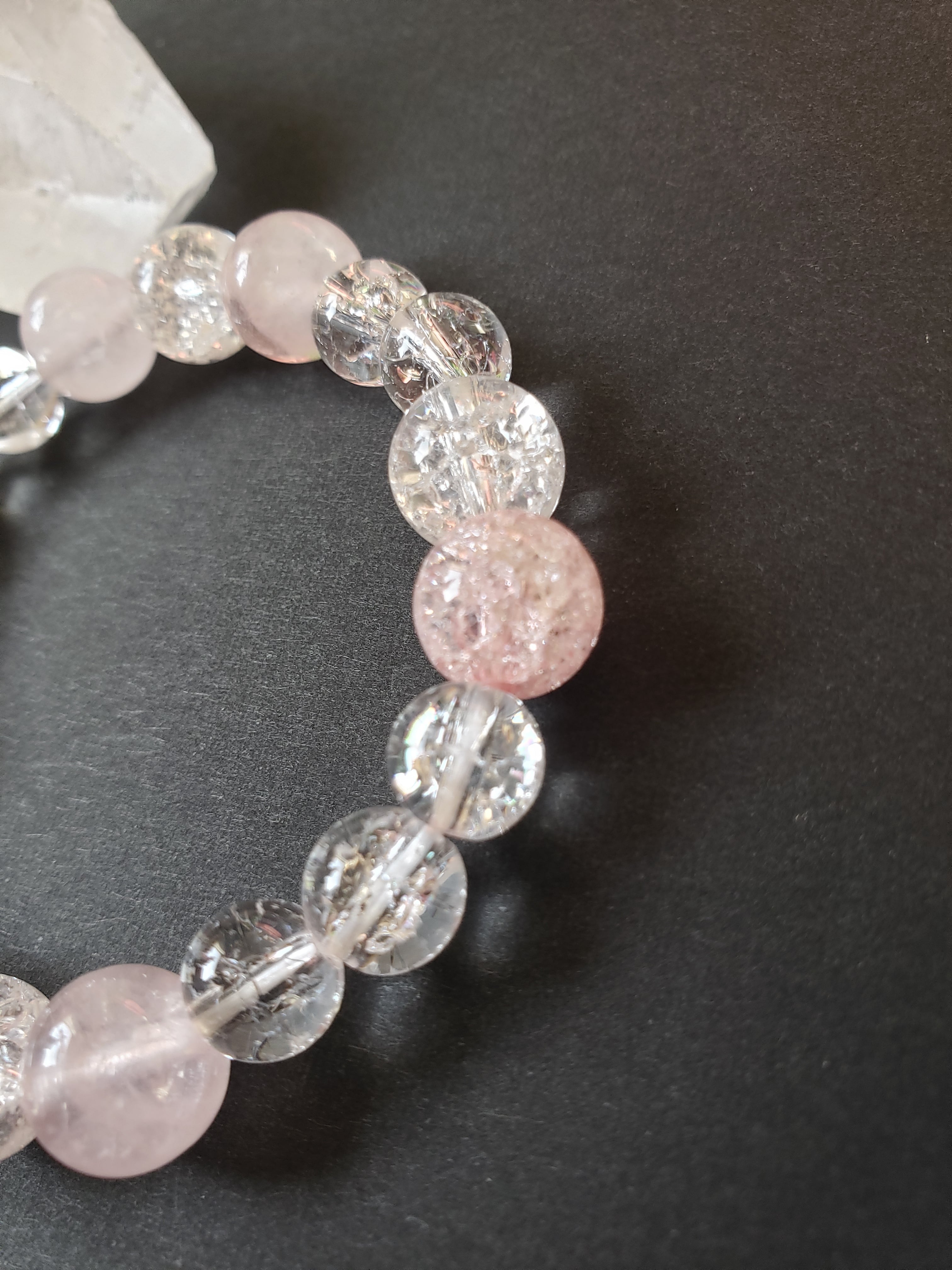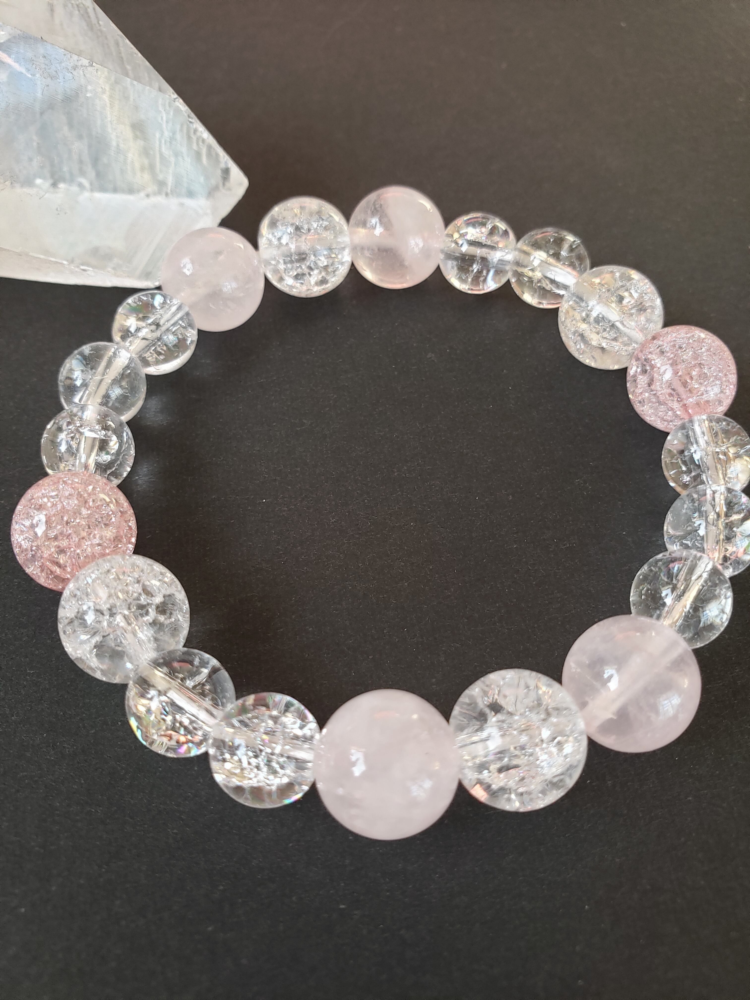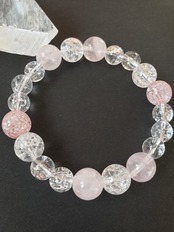 ~~~ クラック水晶をベースにローズクオーツと共に、まるで妖精かのような可愛らしいブレスレットにしました。