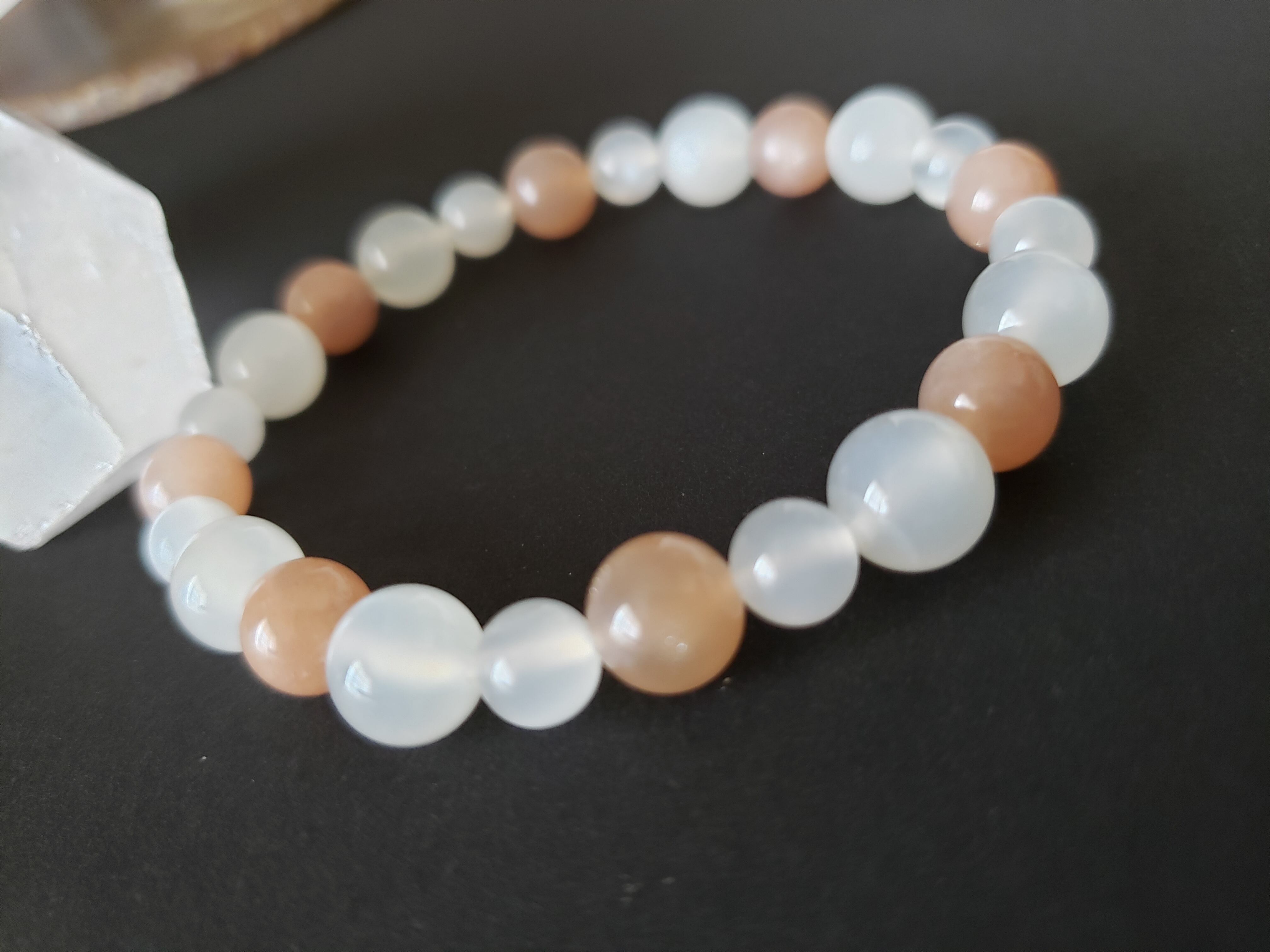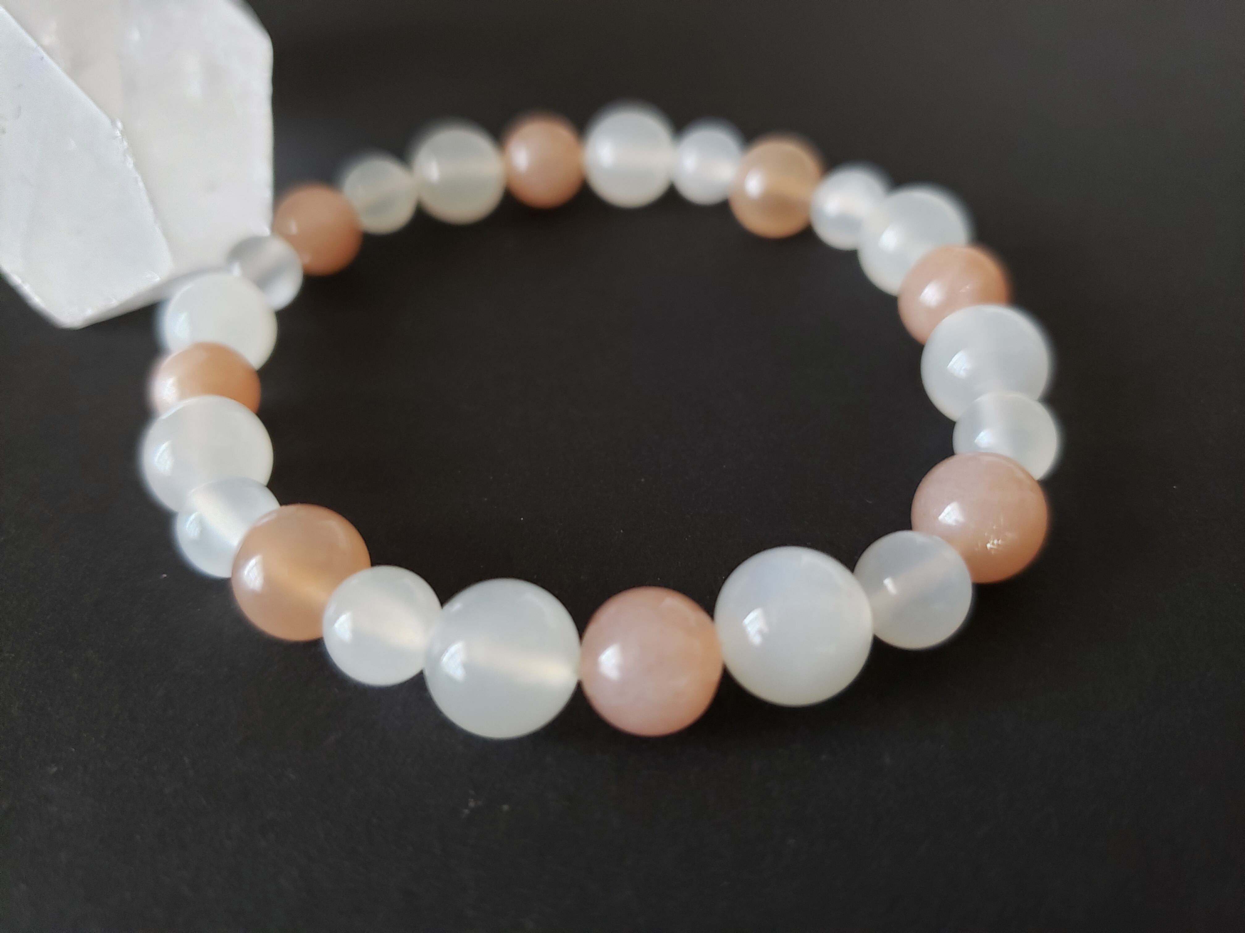 ~~~ 2色のムーンストーンでブレスレットにしました。