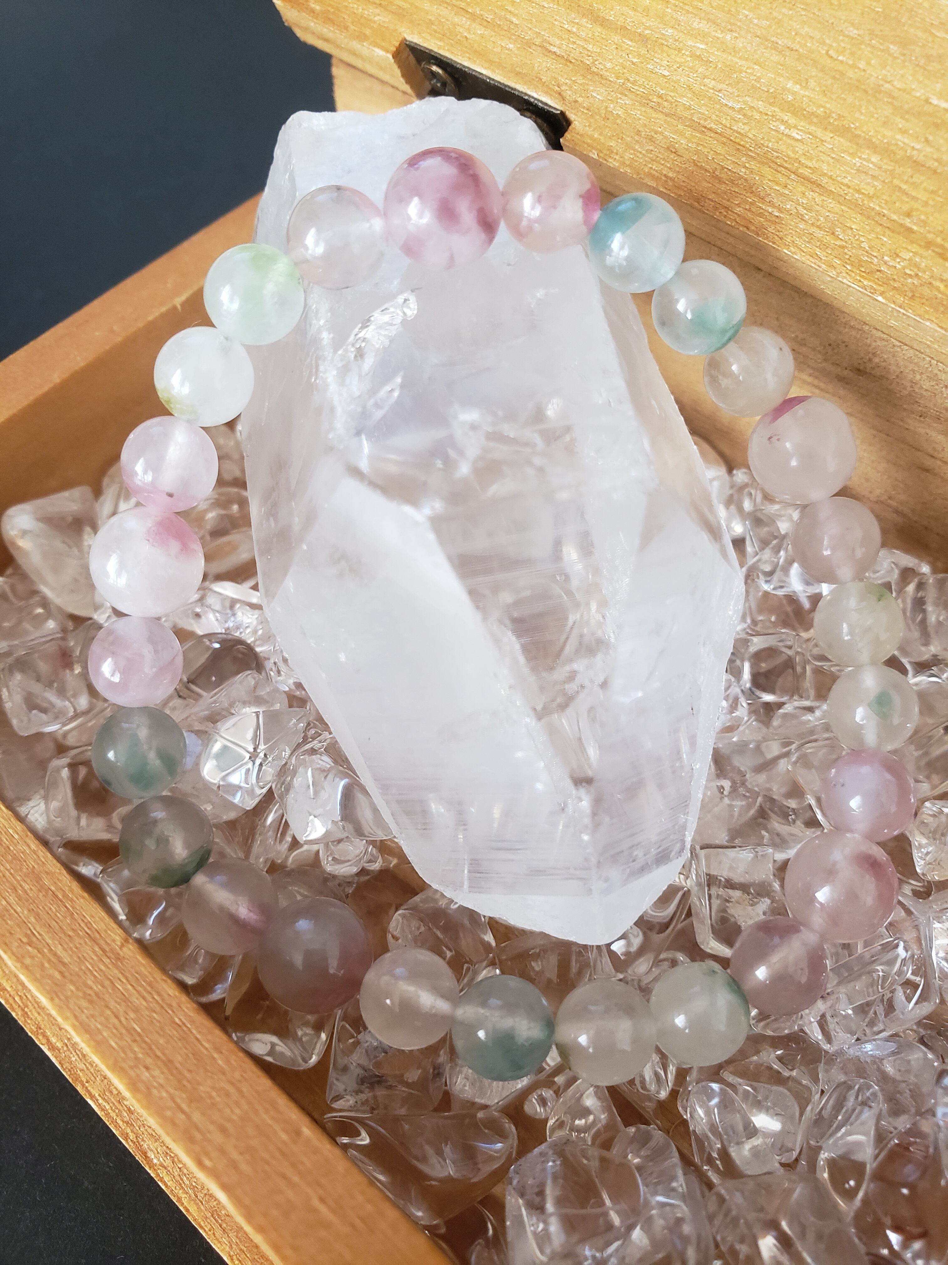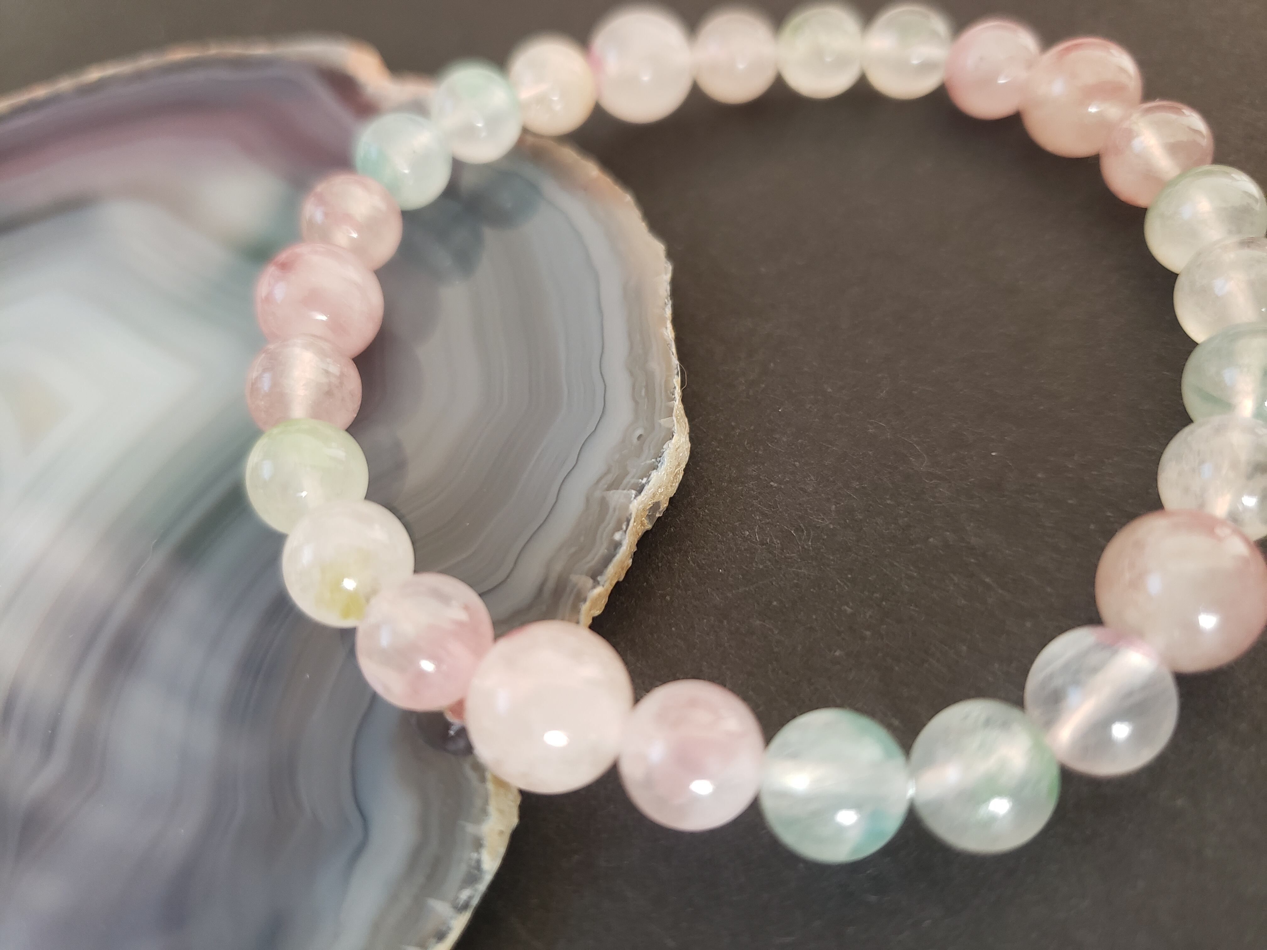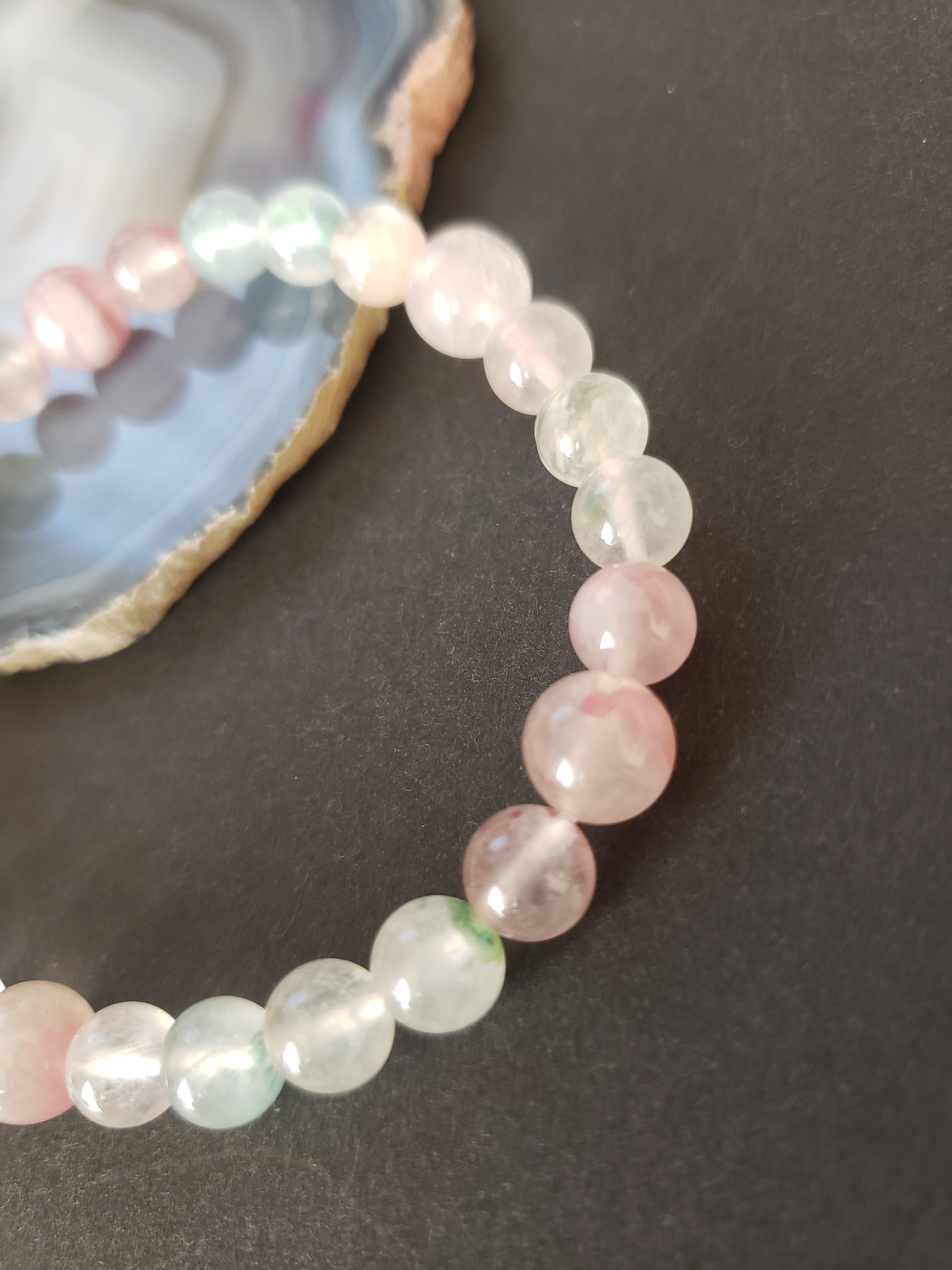 全体的に淡いトルマリンシリカが、なんとも春っぽい色合いだな。と思う可愛いブレスレットです。 ~~~