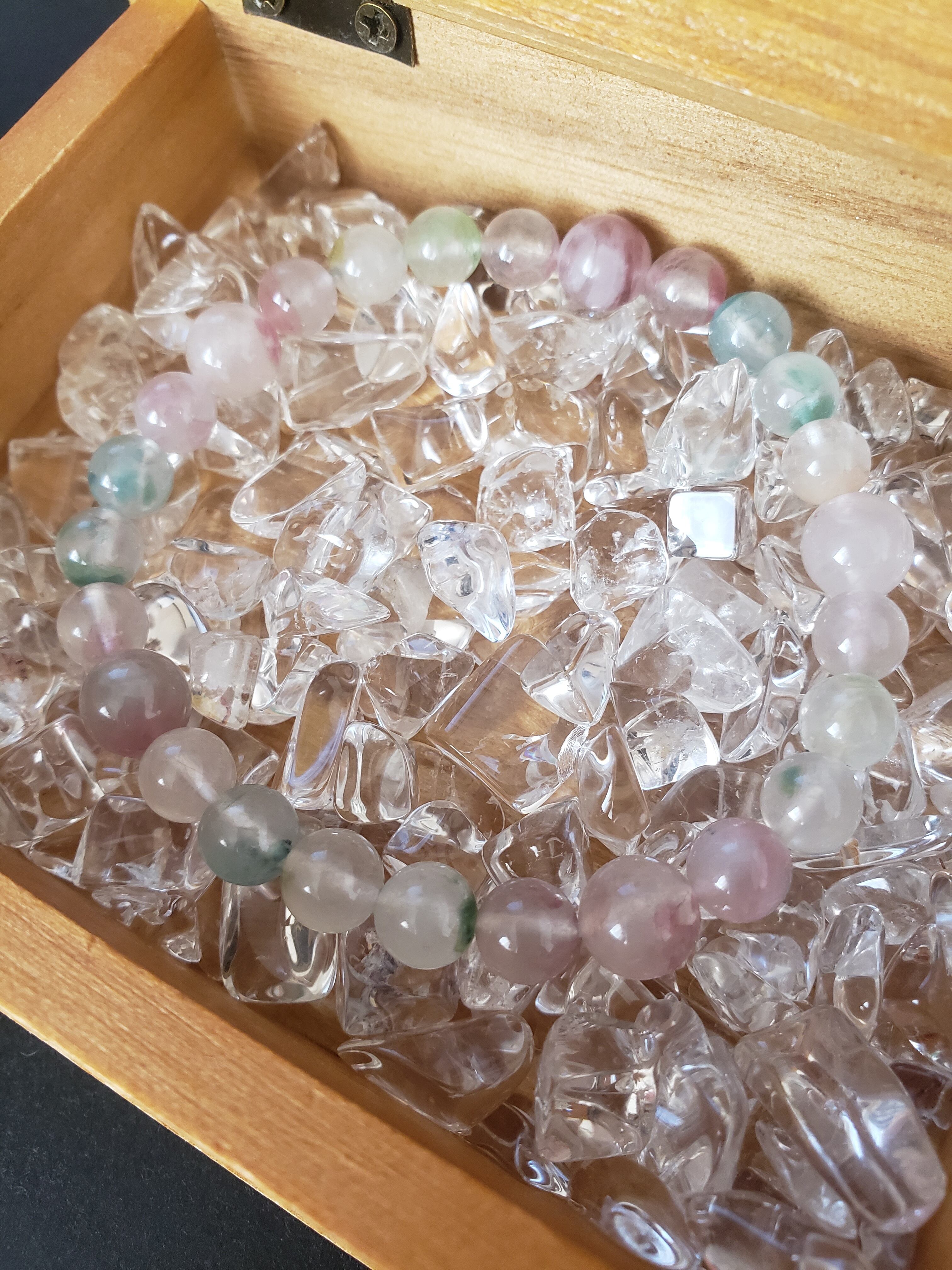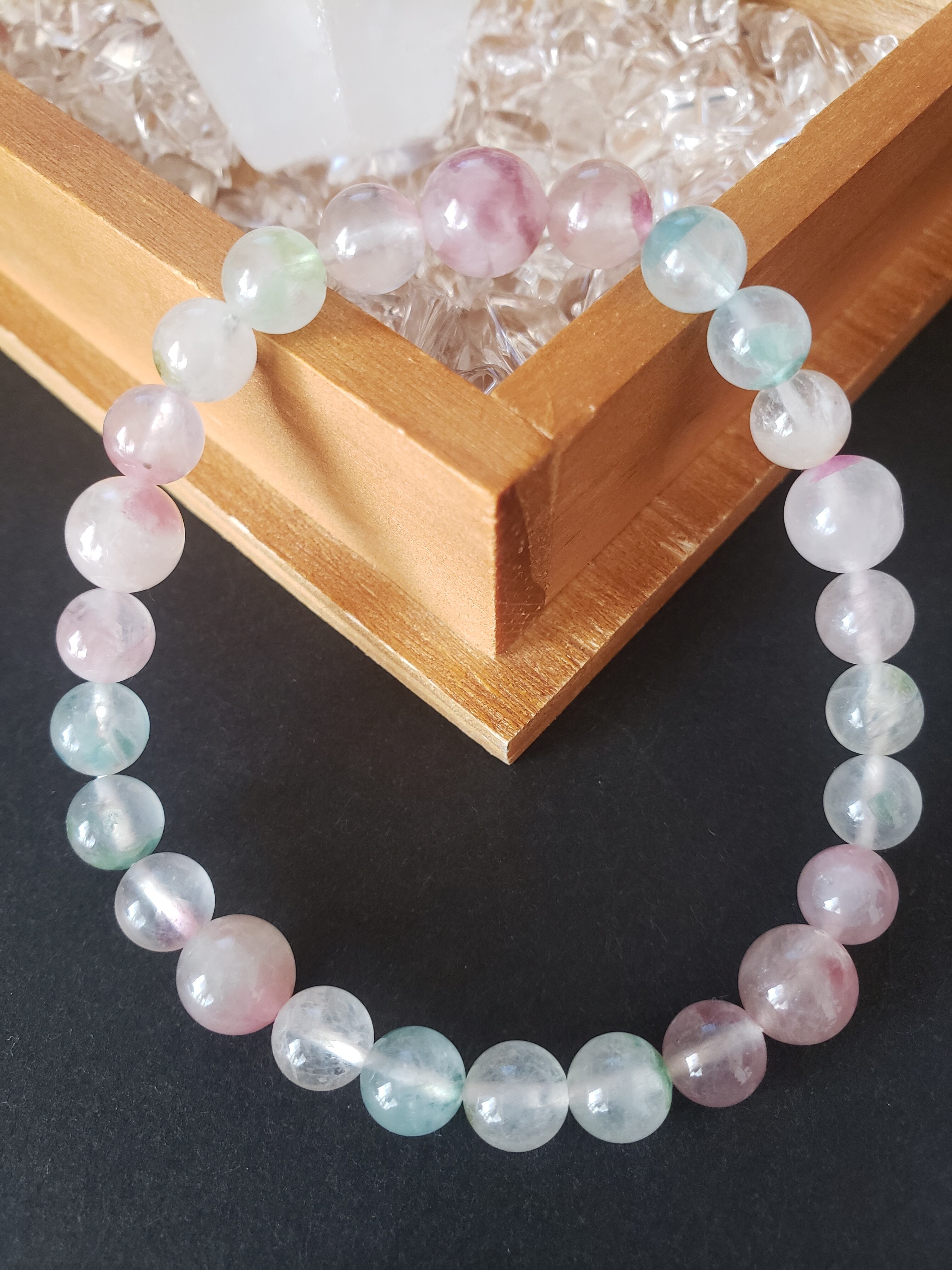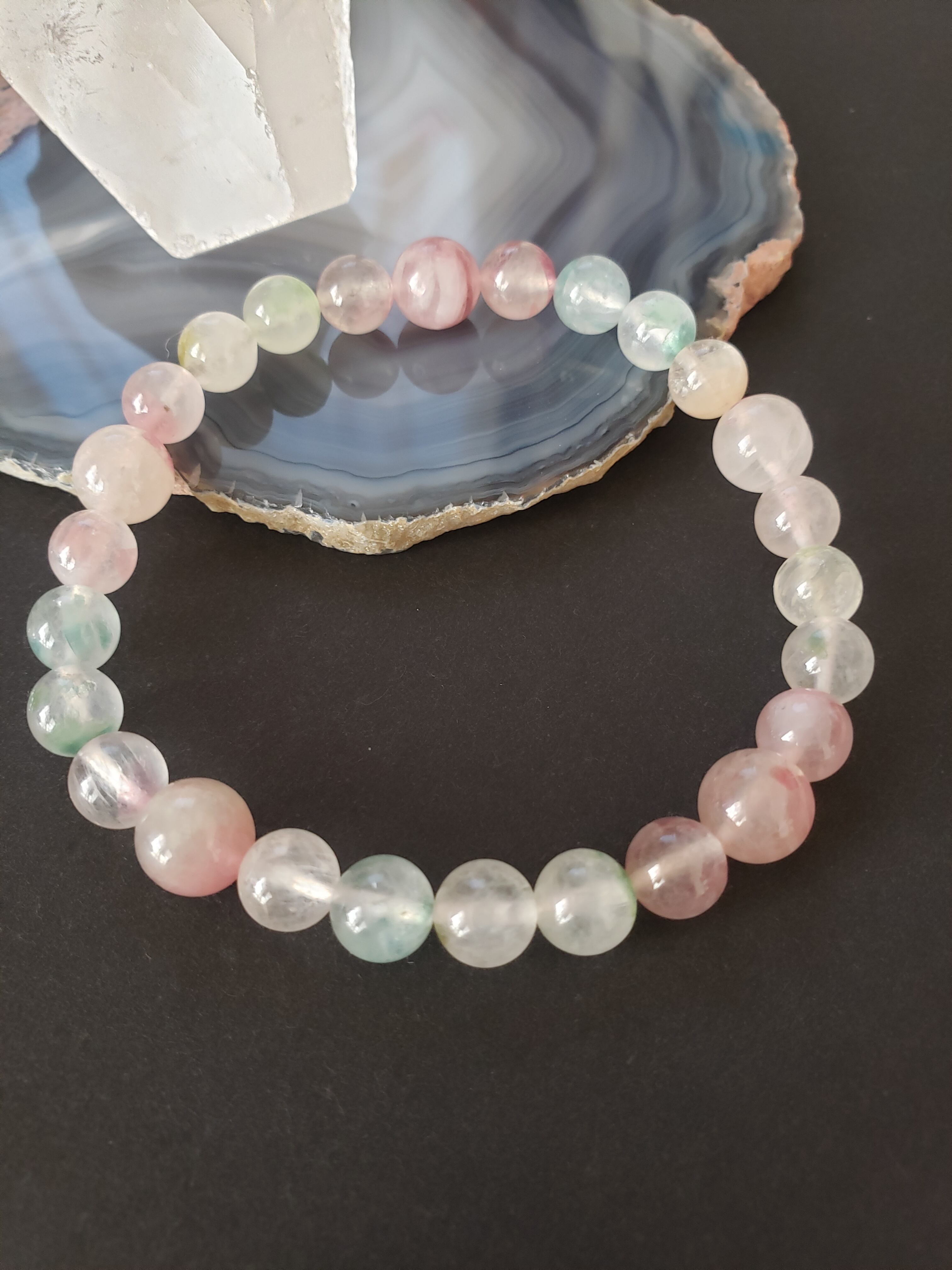 全体的に淡いトルマリンシリカが、なんとも春っぽい色合いだな。と思う可愛いブレスレットです。 ~~~