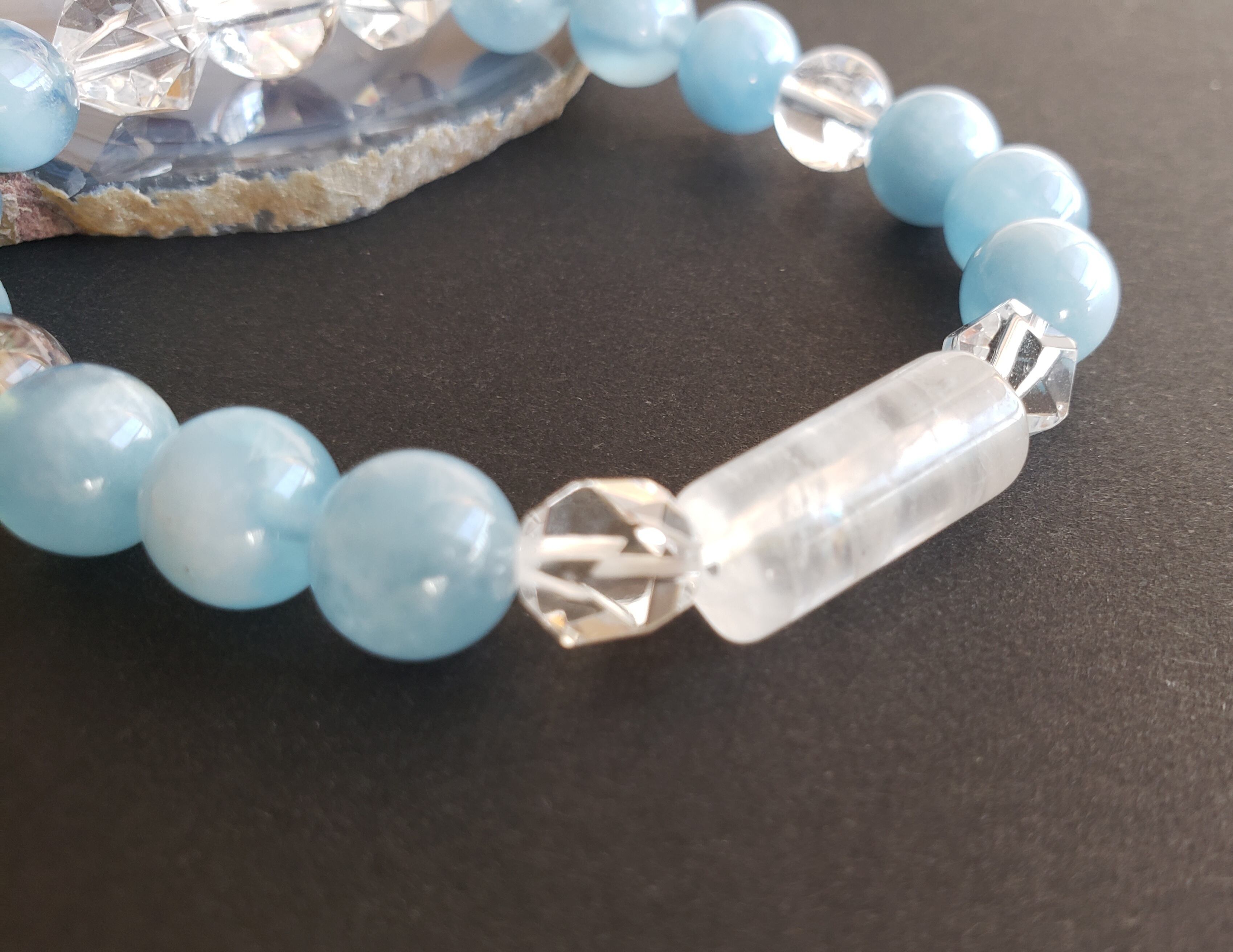 でも甘すぎないこの石と、アイリスクォーツと円柱型の水晶を合わせました。
