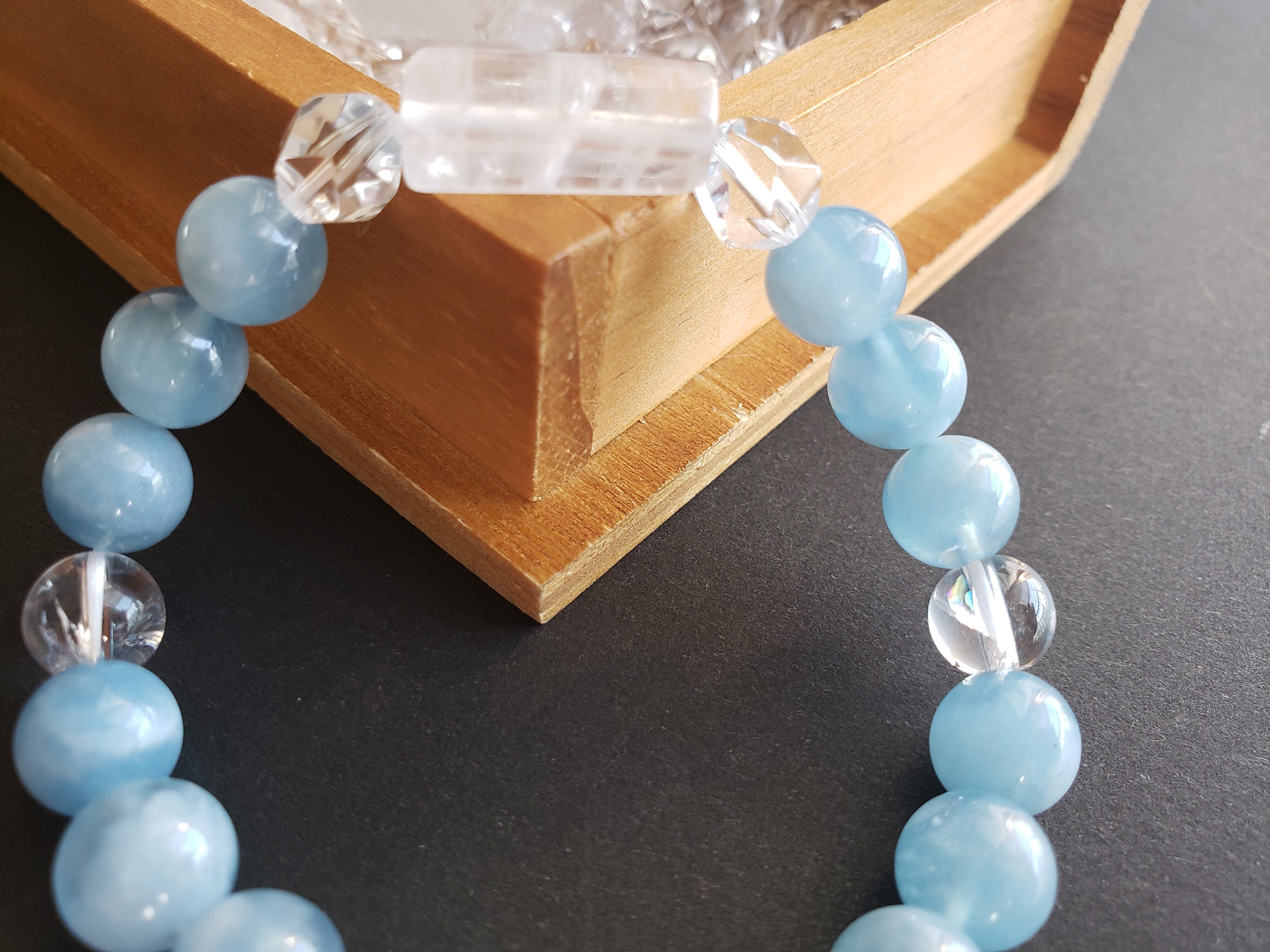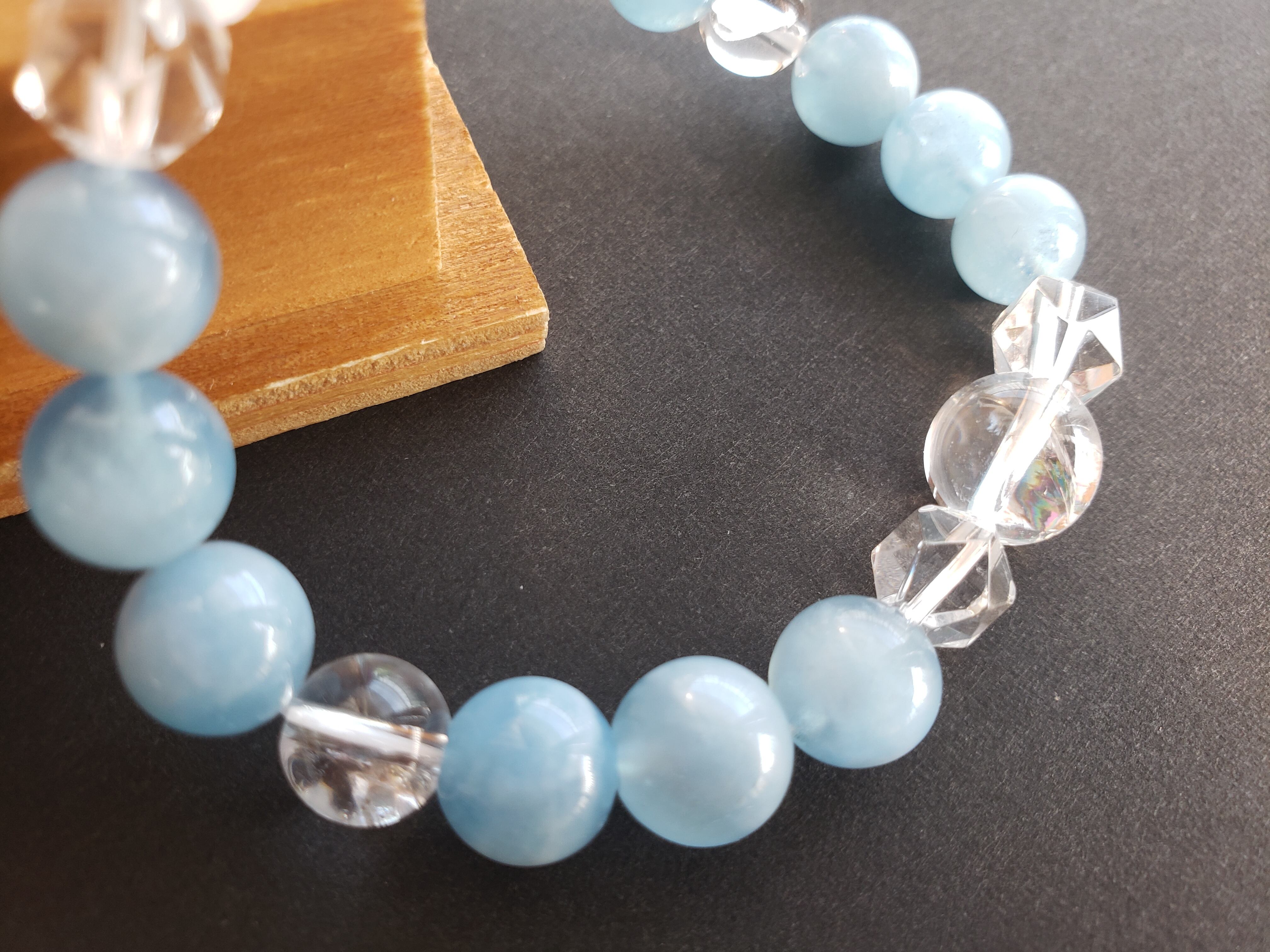 ●天然石のため(細かな傷を含め)傷や、欠け・ヘコミ・クラック(内部の割れ)・インクルージョン(内部の気泡や不純物)・ブレスレットの玉のサイズに若干の不揃い(±0.5前後)がある場合があります。天然石の魅力でもあり石の個性としてご理解いただけると幸いです。