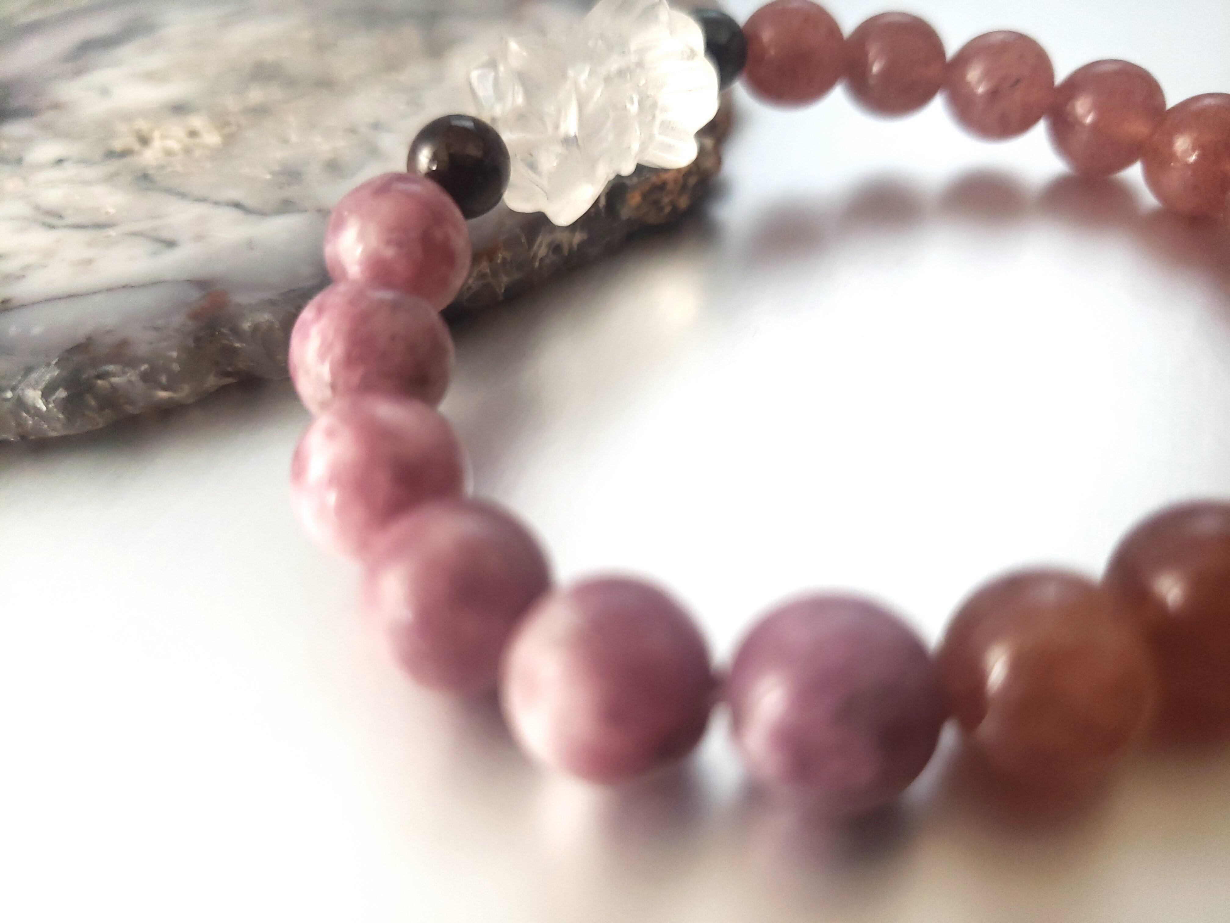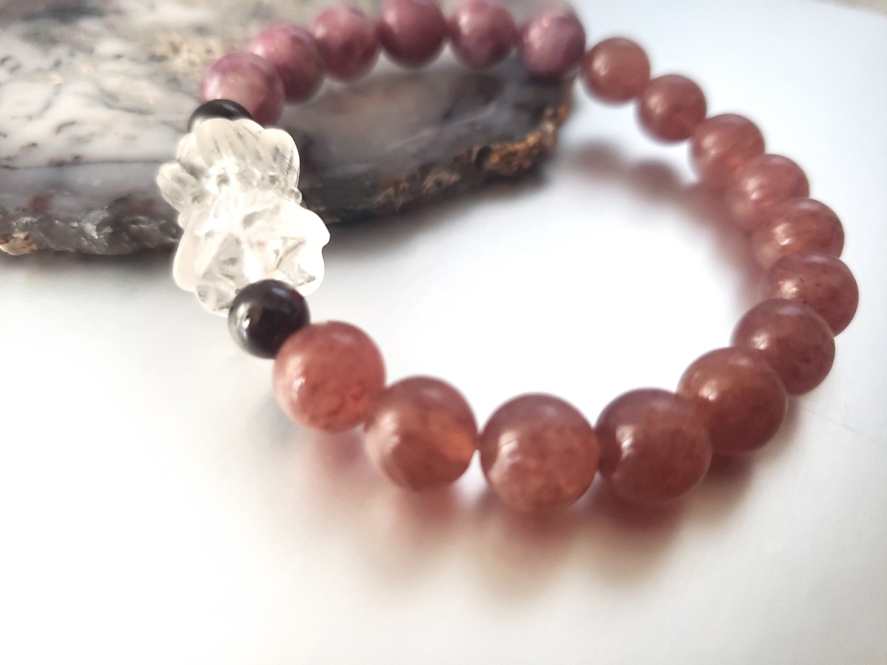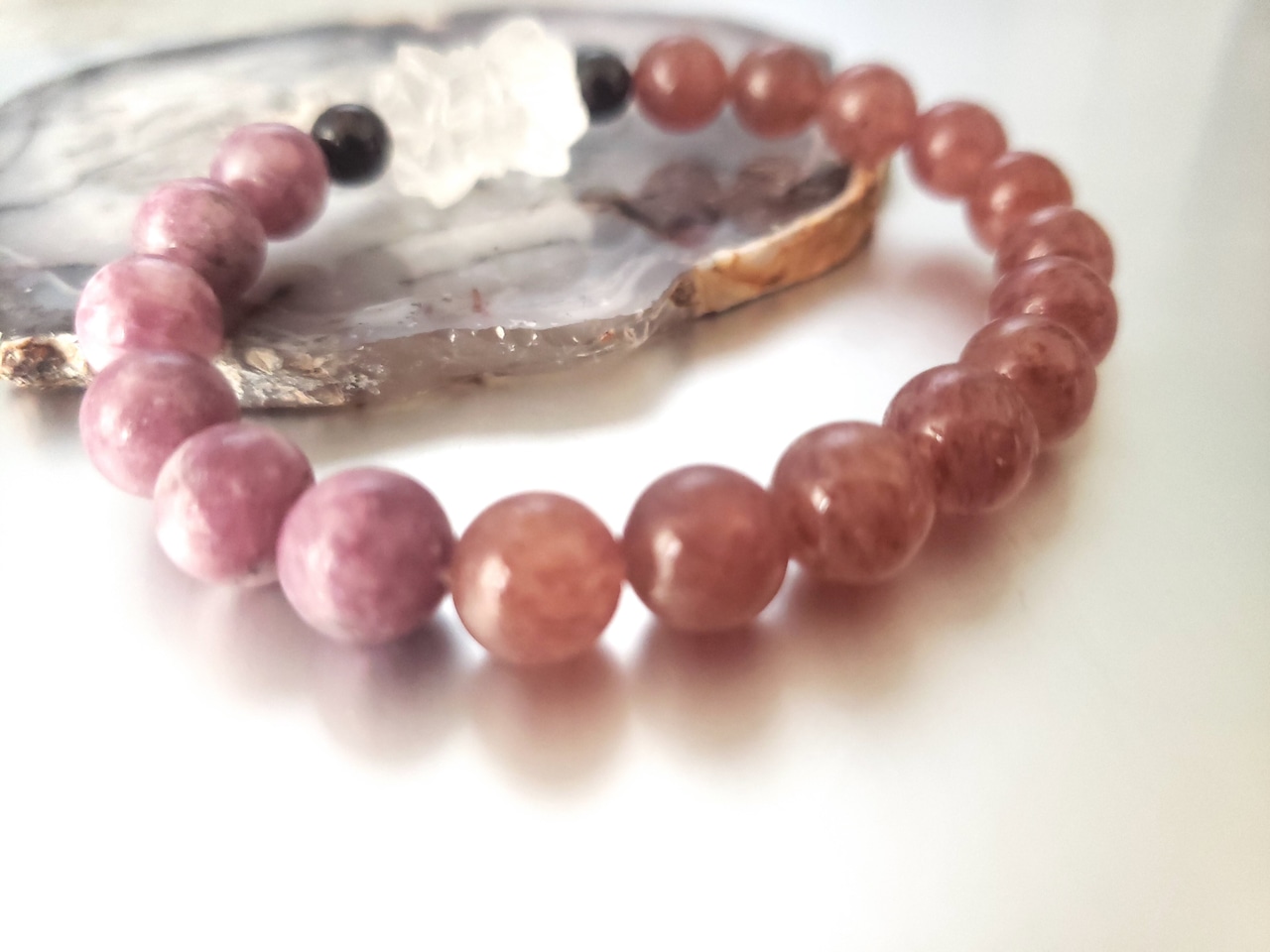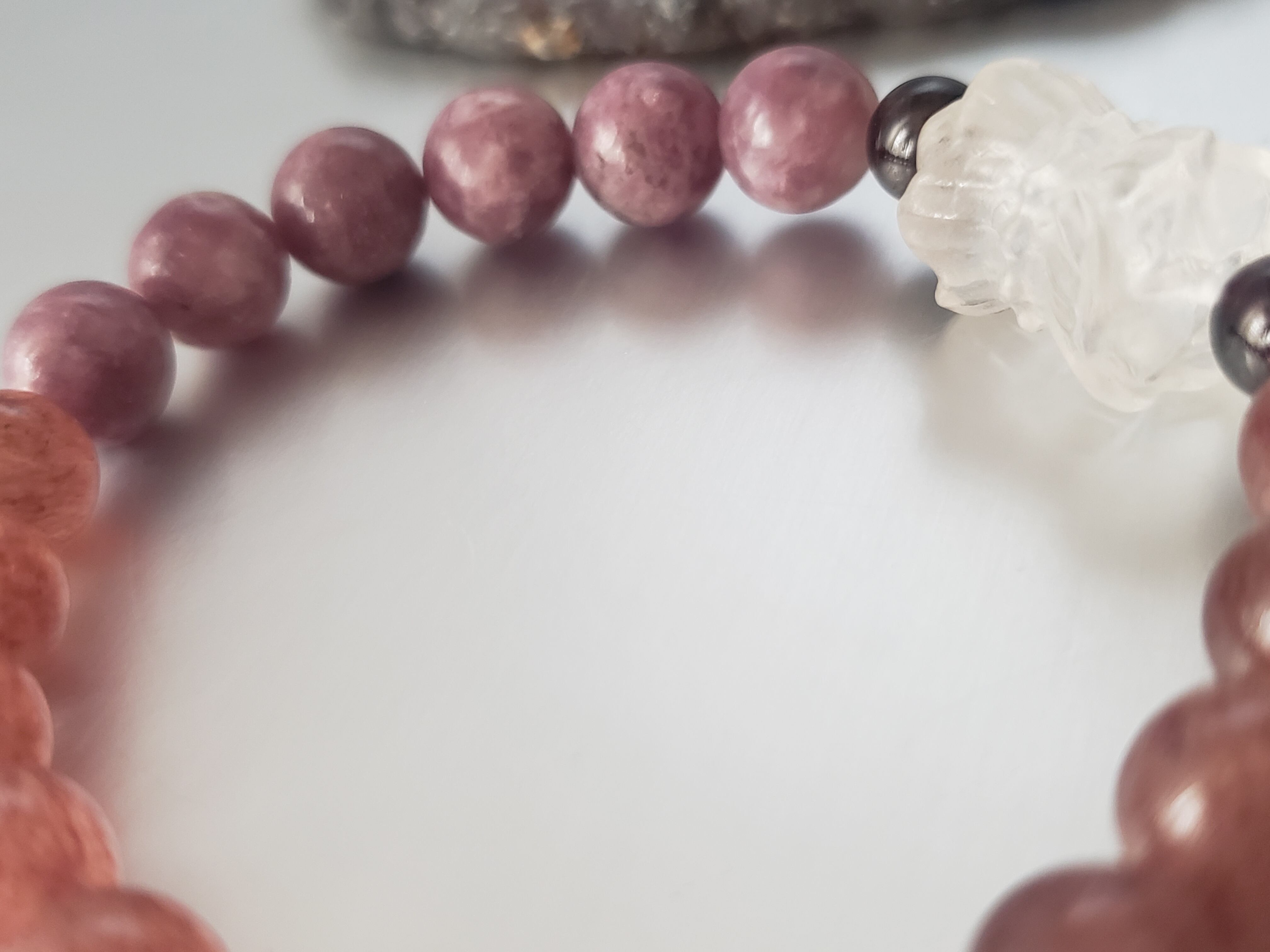 ~~~ 美しい水晶の双頭蓮が、モスコバイトとレピドライトの愛らしい組み合わせのブレスレットです!